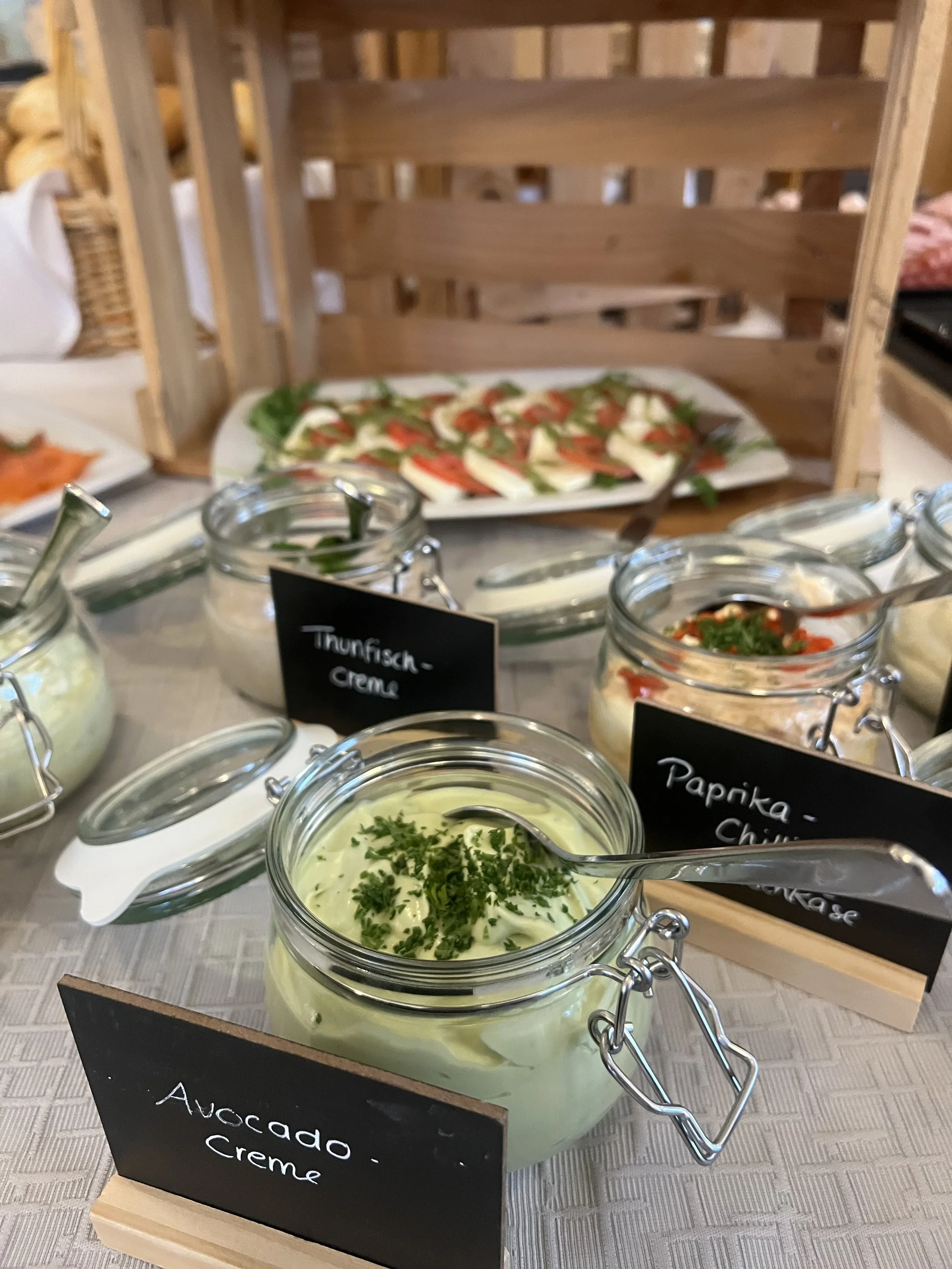 Neben den Klassikern wie knackigen Brötchen, herzhaften Wurst- und Käseplatten, frischen Eierspezialitäten und knusprigem Bacon erwarten Sie hausgemachte Aufstriche und saisonale Spezialitäten.