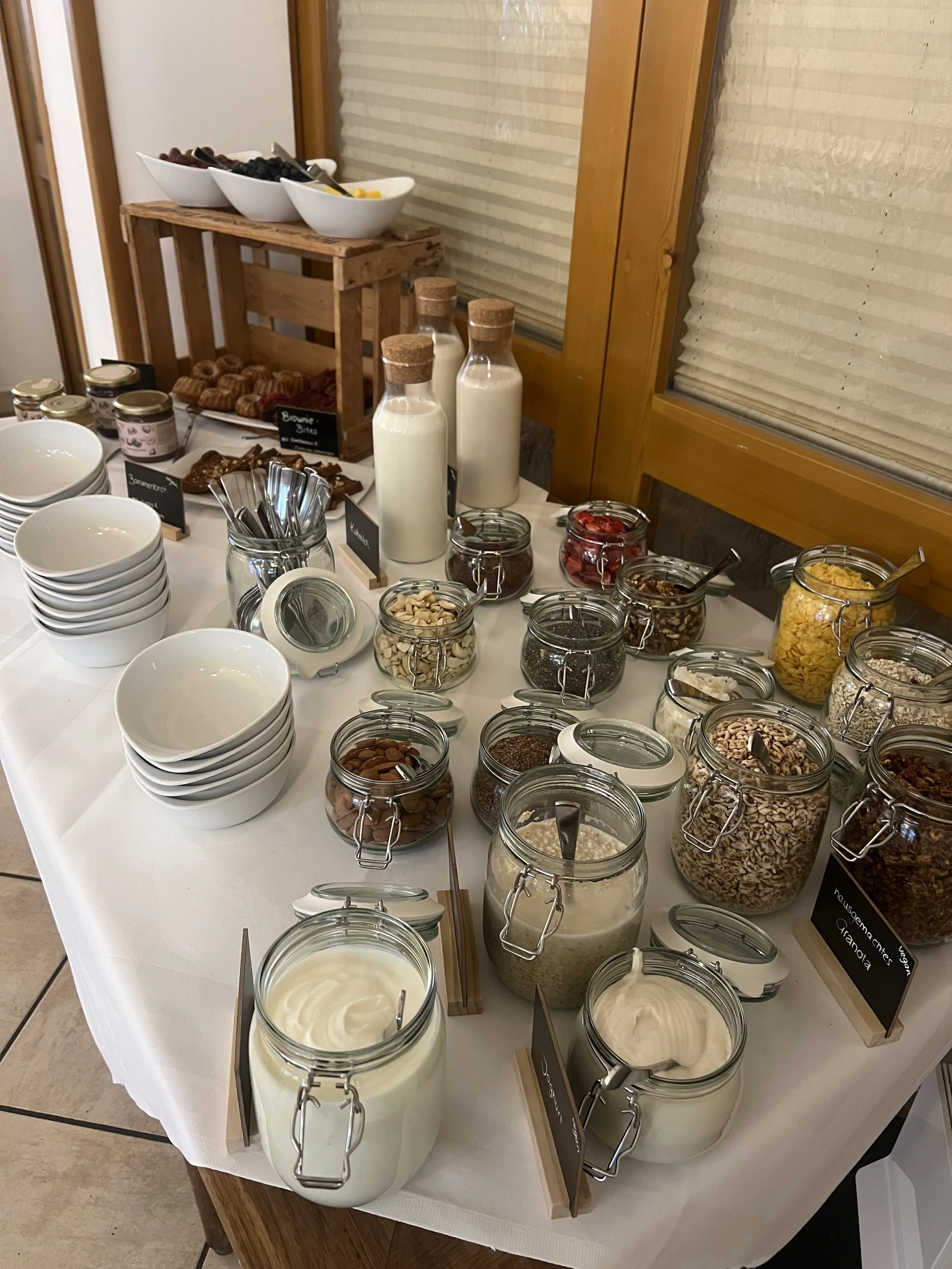 Ein besonderes Highlight ist unsere Bowl-Station – unter anderem mit frischem Obst, Müsli, Granola und Joghurt, dazu verschiedene Toppings. Natürlich gibt es auch vegane Alternativen, damit jeder seine ganz persönliche Lieblingsbowl genießen kann.